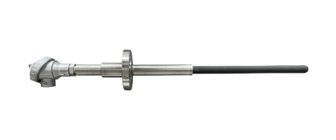 用于焦爐蓄頂測溫,熱電偶插深接近2米采用四方加強盒及加強筋確保產品水平安裝時在高溫環境下的不會變形。采用活動法蘭連接,可以調節插深。